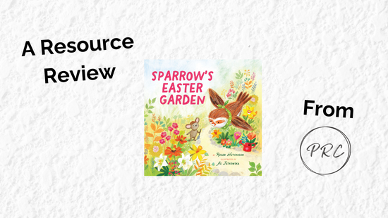 If I threw it back to the 1990s and made a David Letterman-style Top Ten Questions I Get In Children’s and Family Ministries, “How do I address Lent and Holy Week with children?” would be in the top 5. Part of the curiosity stems from wanting to address the events, themes, and implications in a developmentally appropriate way while not scaring the children. Part of it comes out of the adult’s deep questions about Holy Week. It can be HARD for any age level to process, synthesize, and apply it to their lives and when you’re a bit shaky on it, it’s even harder to address it with children. When a quality resource for just this topic lands on my desk, I snap it up, promptly stamp it with my personalized book stamp, and begin a sticky note of uses for it that lives on the front cover. The mail carrier delivered our mail at 5:45 pm today and by 6:15, Sparrow’s Easter Garden by Roger Hutchison was stamped and adorned with a sticky note.