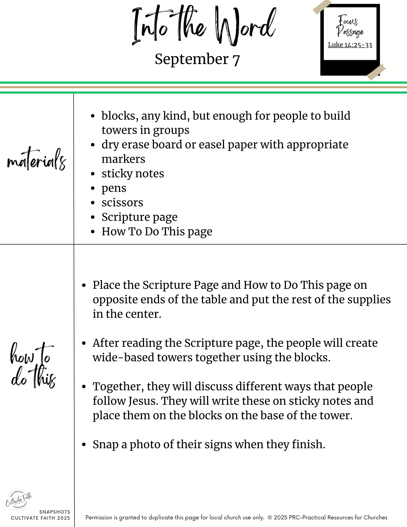 Snapshots: our resource that helps you creatively connect the Scripture and themes in worship with interactive, multigenerational centers