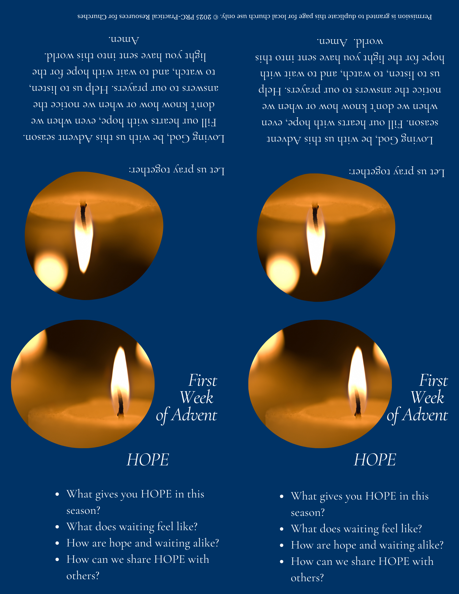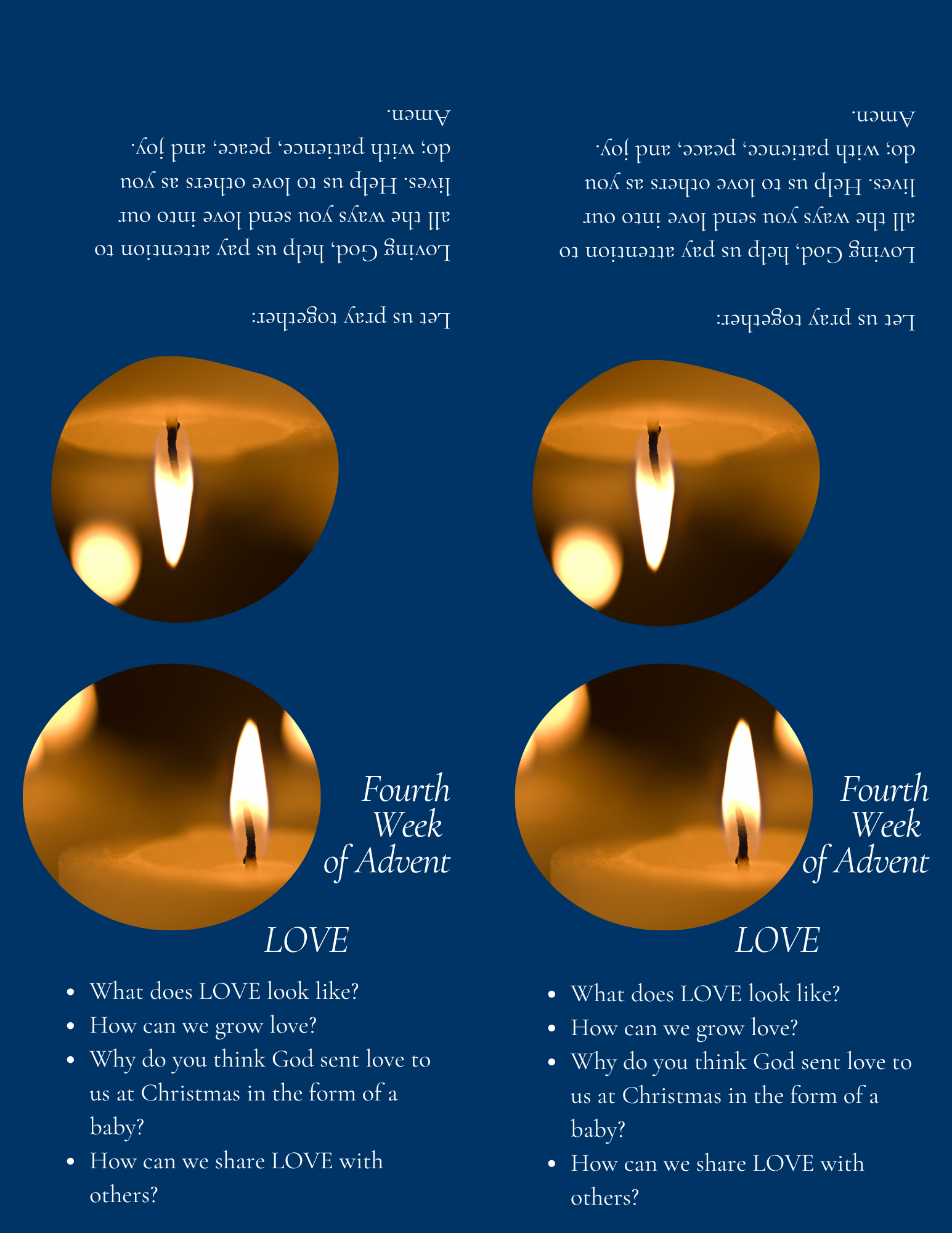 - table tents for each week of Advent, providing families with prayers and wondering questions