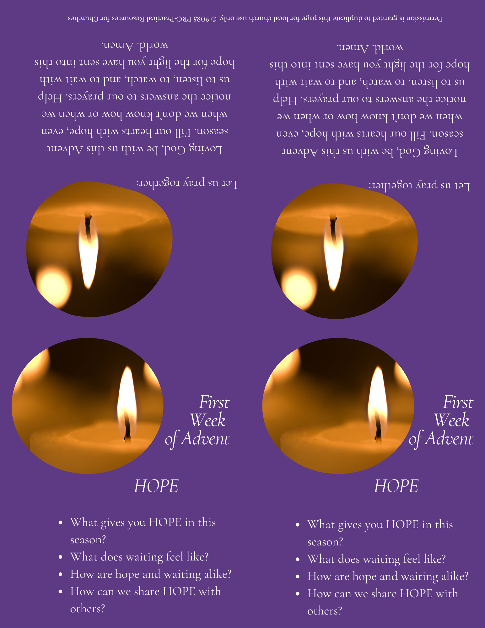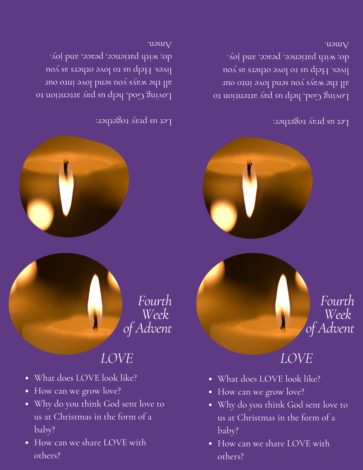 - table tents for each week of Advent, providing families with prayers and wondering questions