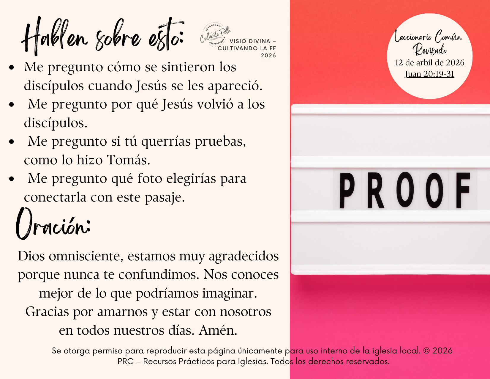 APRIL 2026 SPANISH Visio Divina RCL Year A
