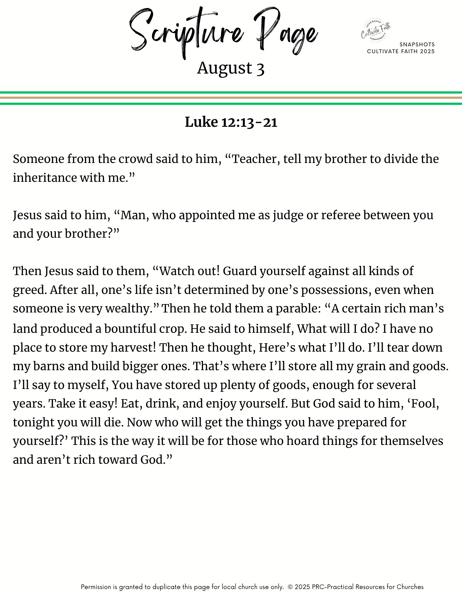 - 8/3: Luke 12:13-21