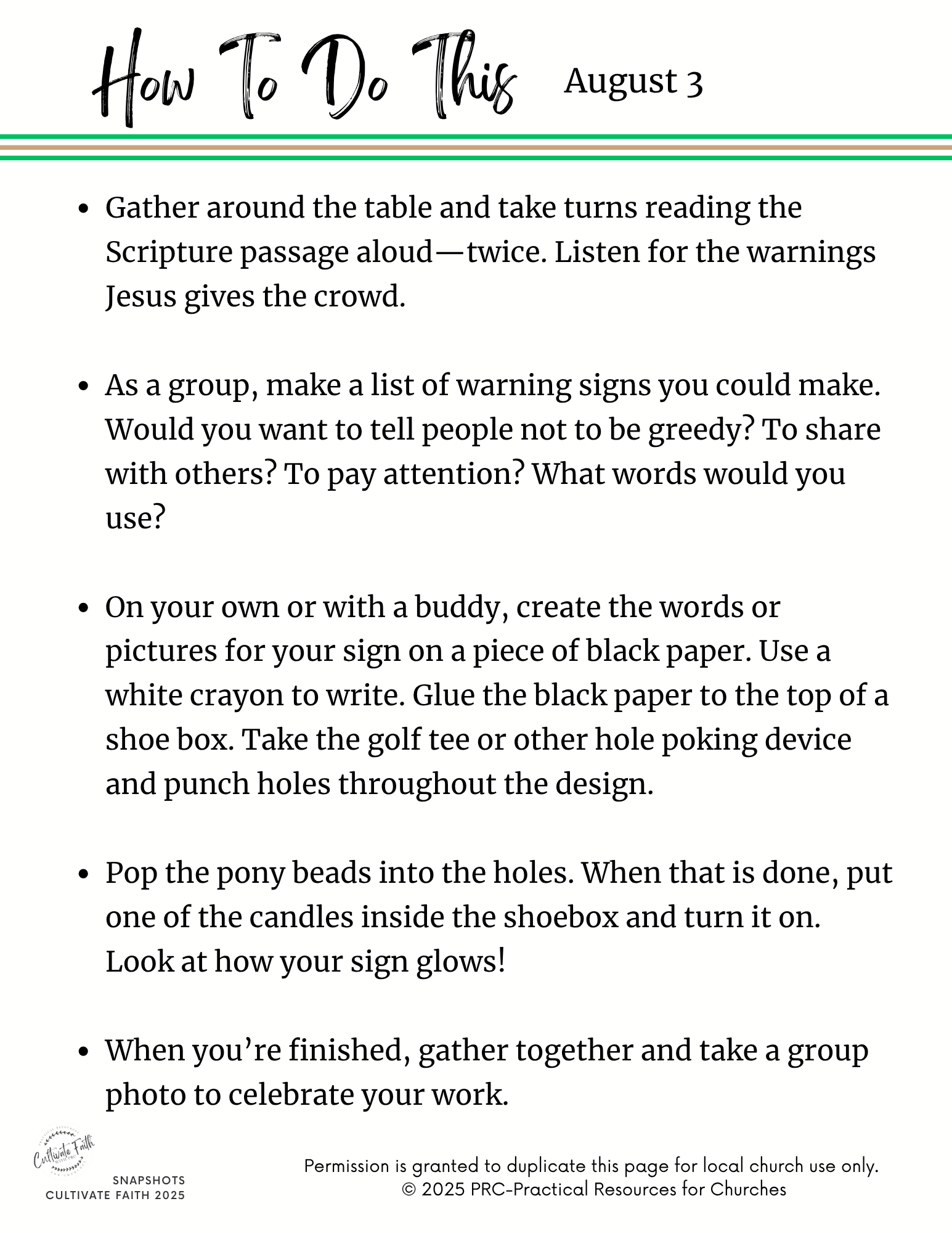Snapshots gives you the plans you need to hold innovative faith formation for the generations immediately after worship. No teachers? No problem. No dedicated time for faith formation? Claim the 15 minutes after worship when people are enjoying fellowship. Our Snapshots resources gives you: