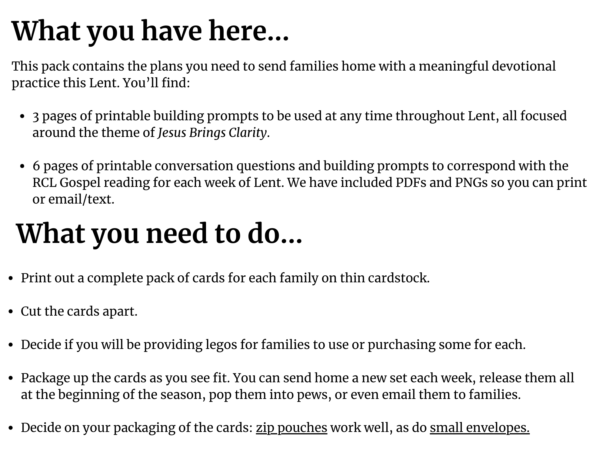 This downloadable pack equips your church to send families home with an engaging practice they can return to week after week. Through simple lego-style building activities and thoughtfully guided conversations, families explore how Jesus brings clarity, hope, and direction to our lives—even when things feel confusing or uncertain.