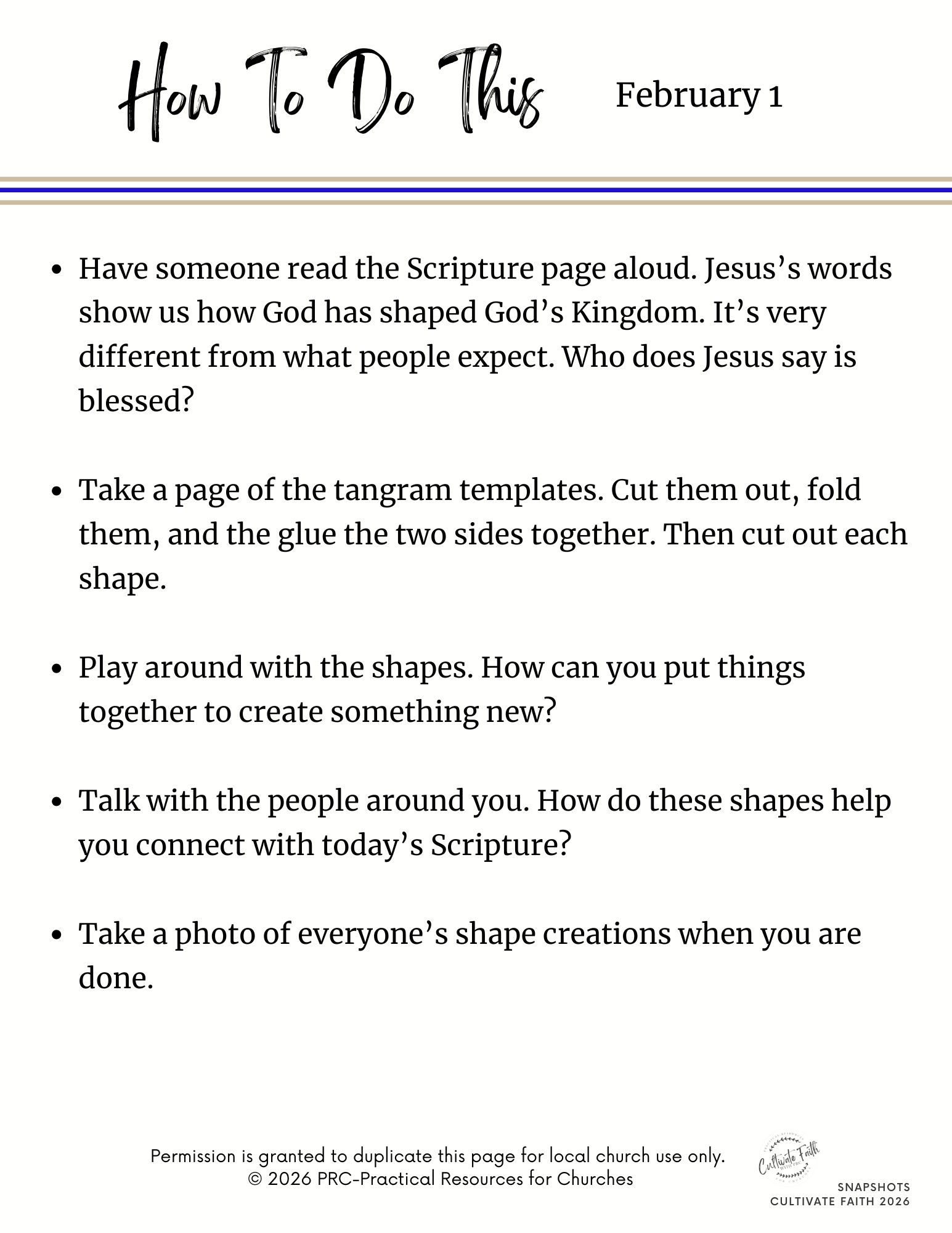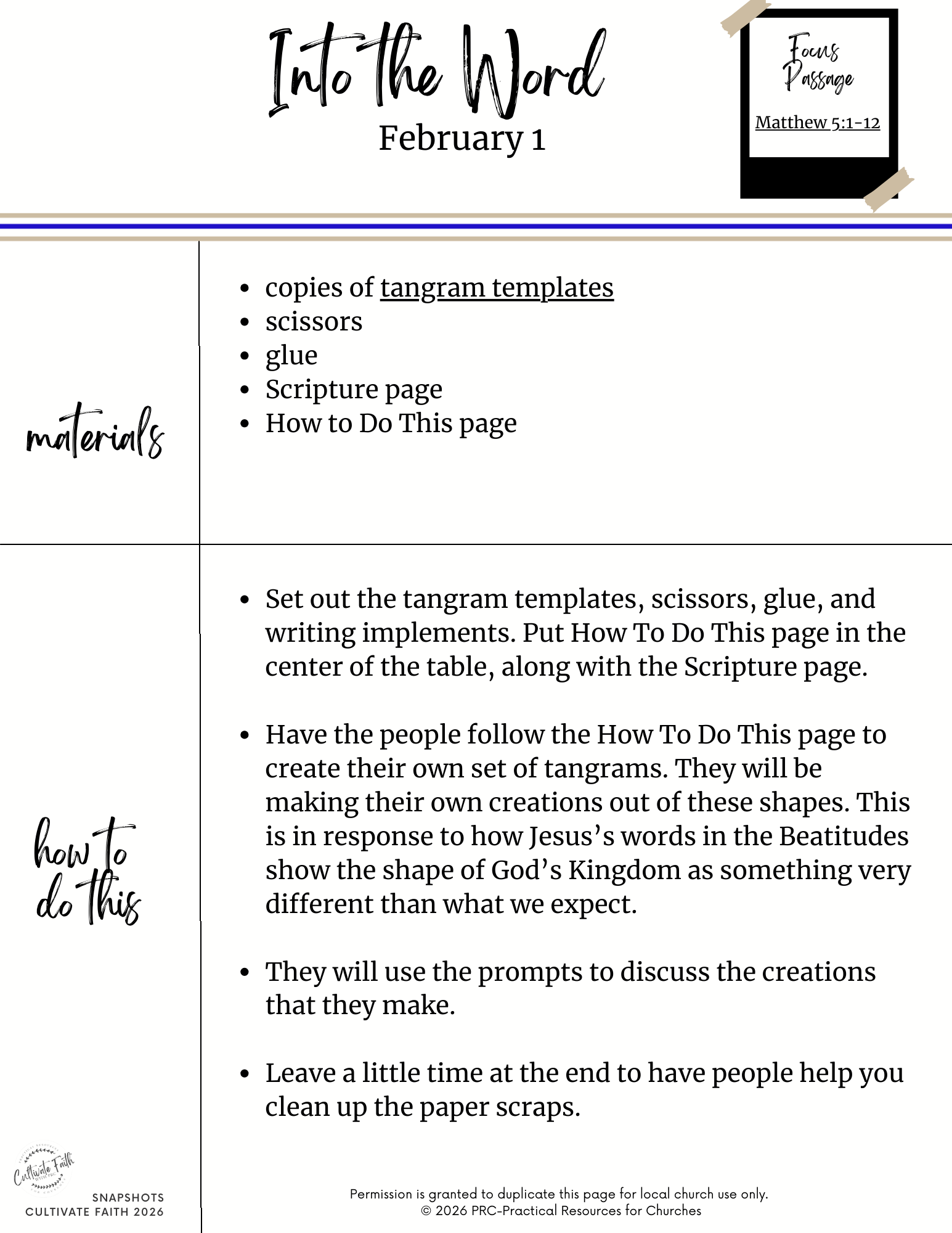- 2/1: Matthew 5:1-12