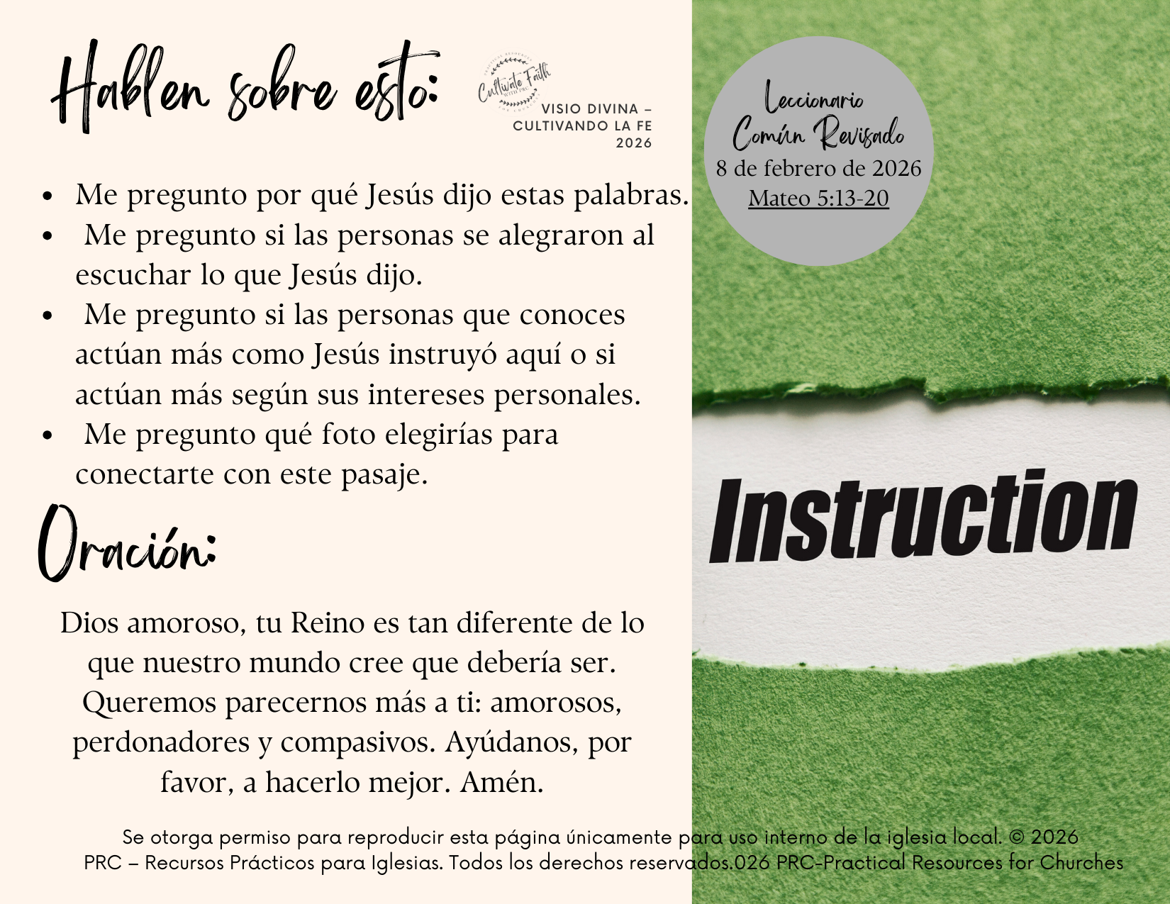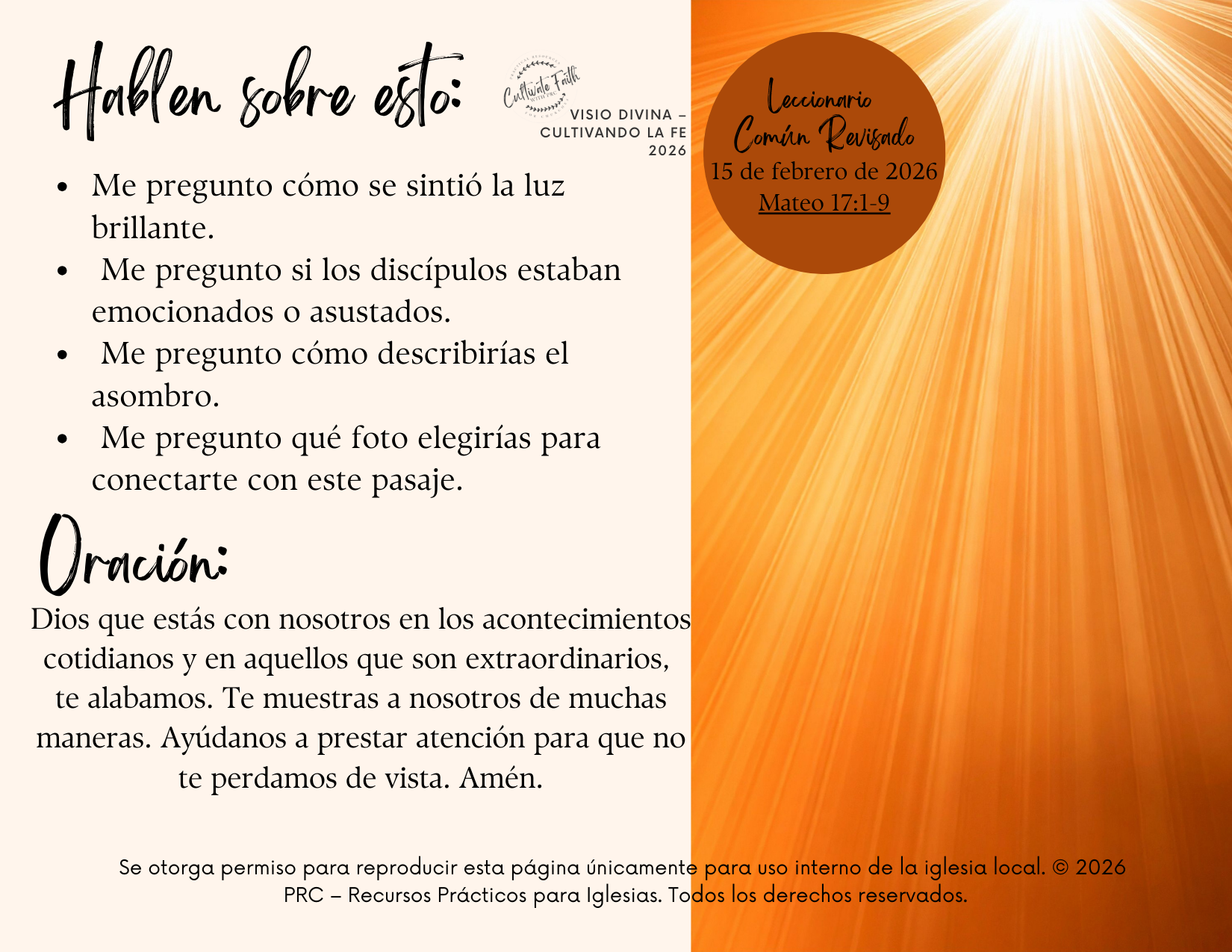 FEBRUARY 2026 SPANISH Visio Divina RCL Year A