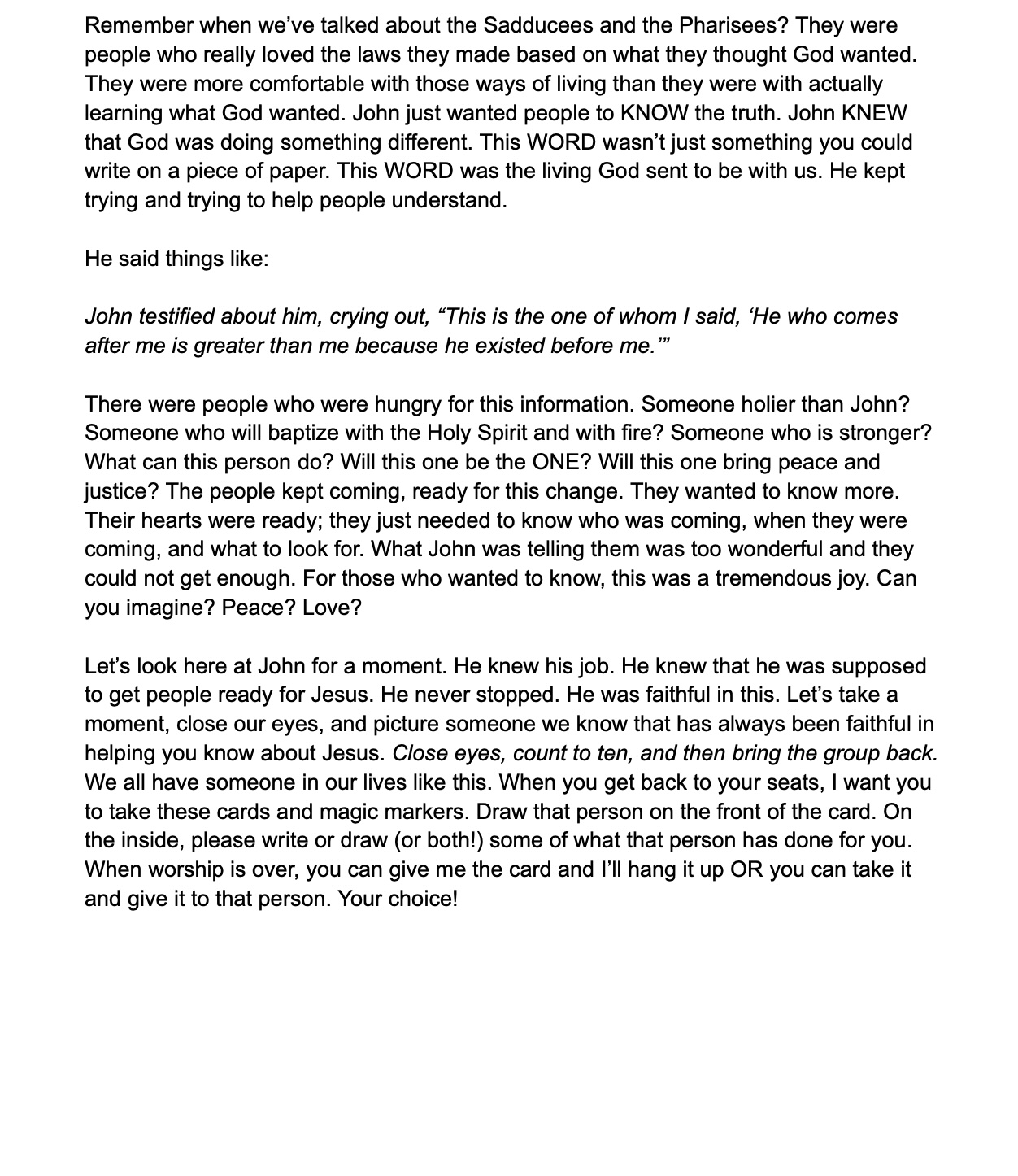 - ideas for your children's moment following the RCL passage for the day