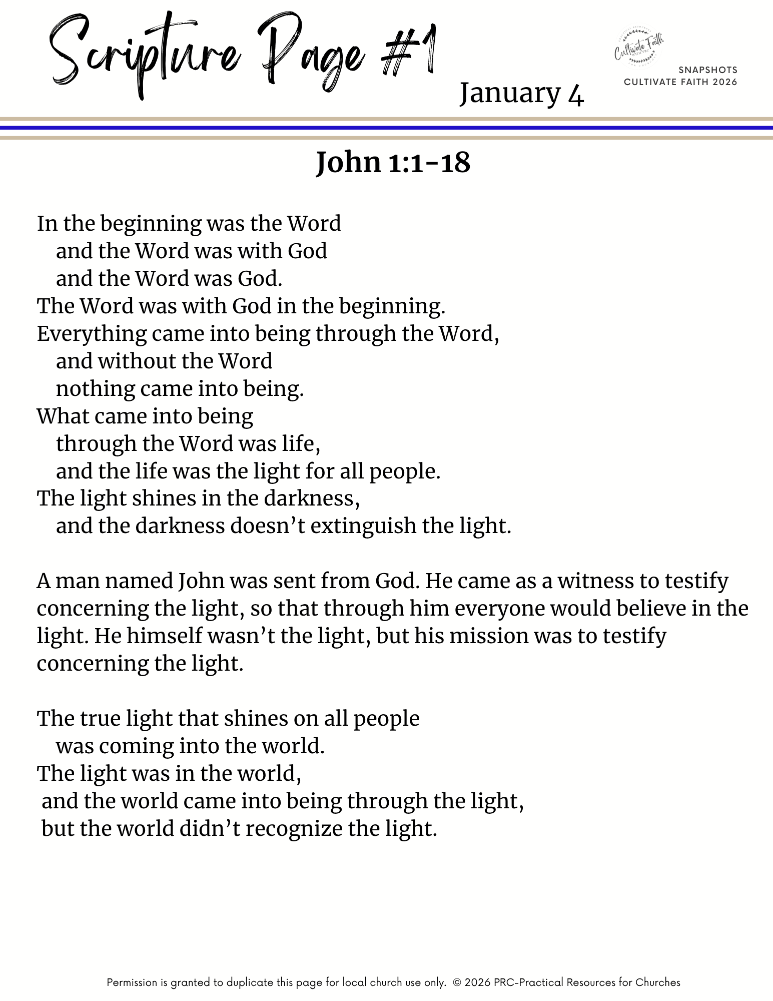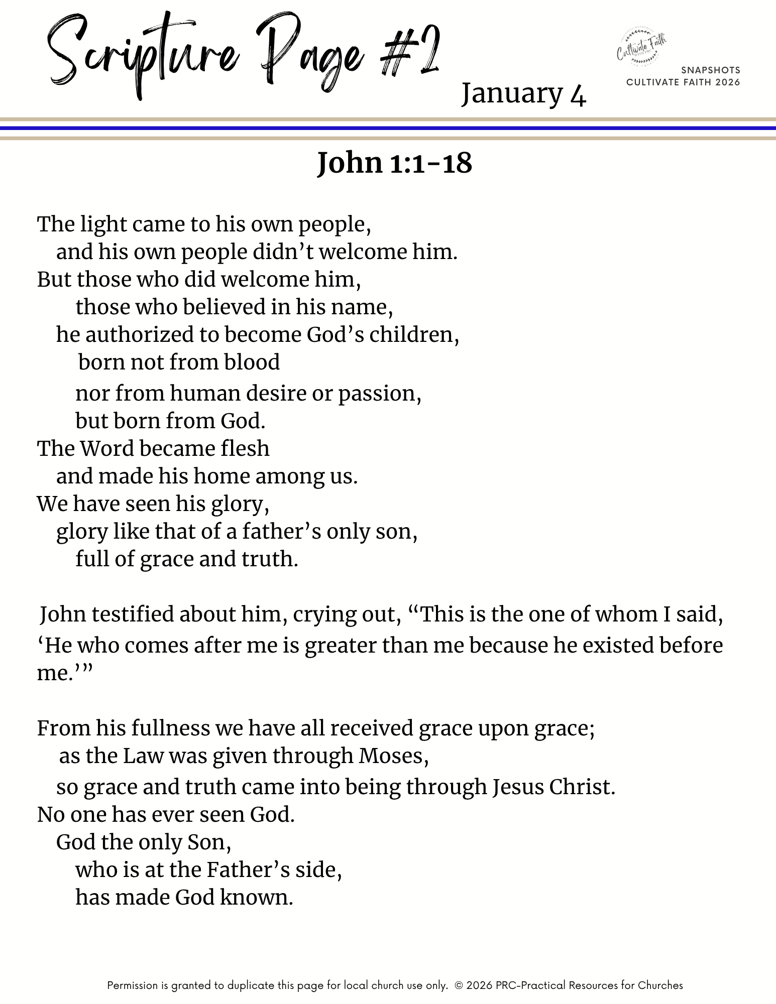 JANUARY 2026 Snapshots RCL Year A