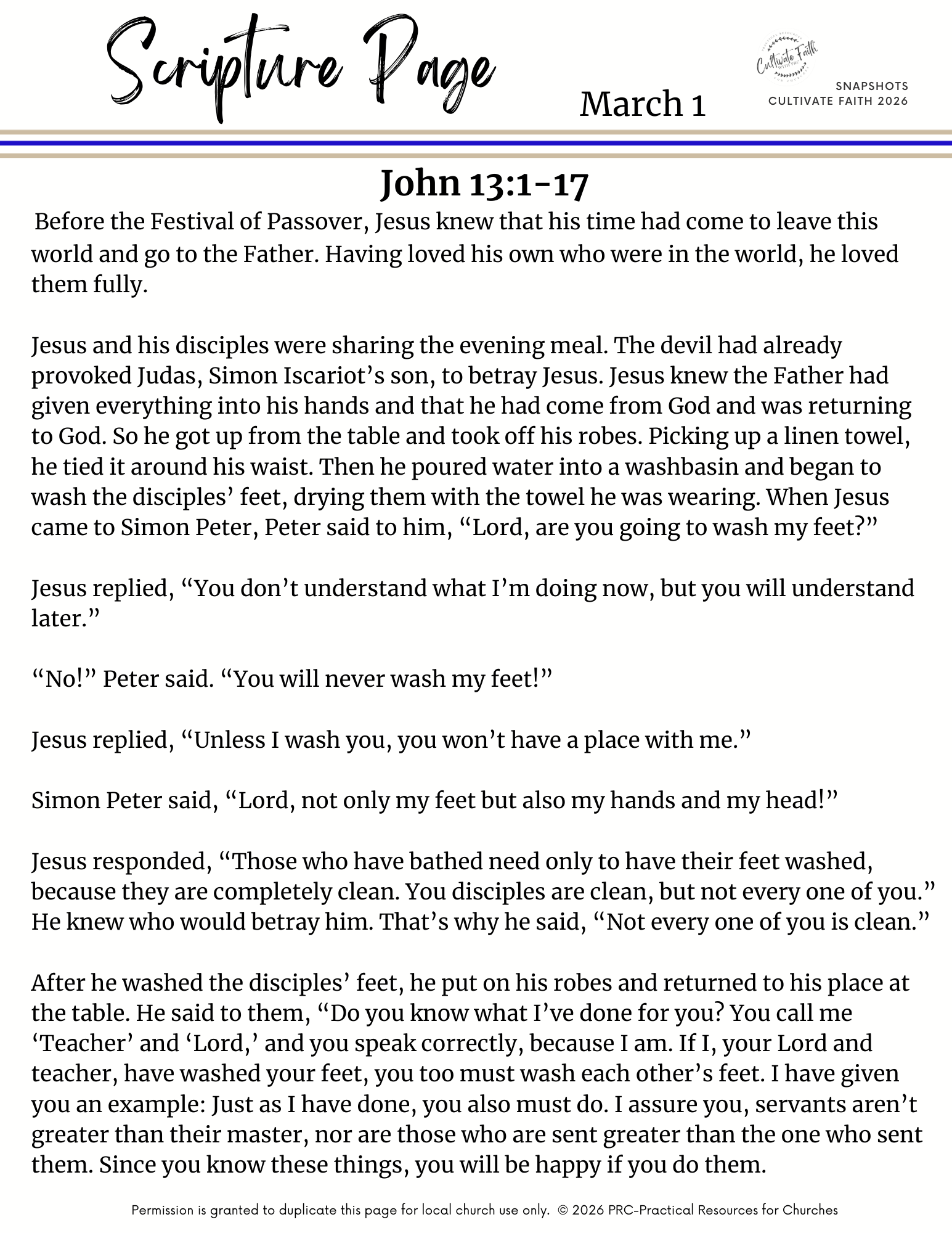 - 3/1: John 13:1-17
