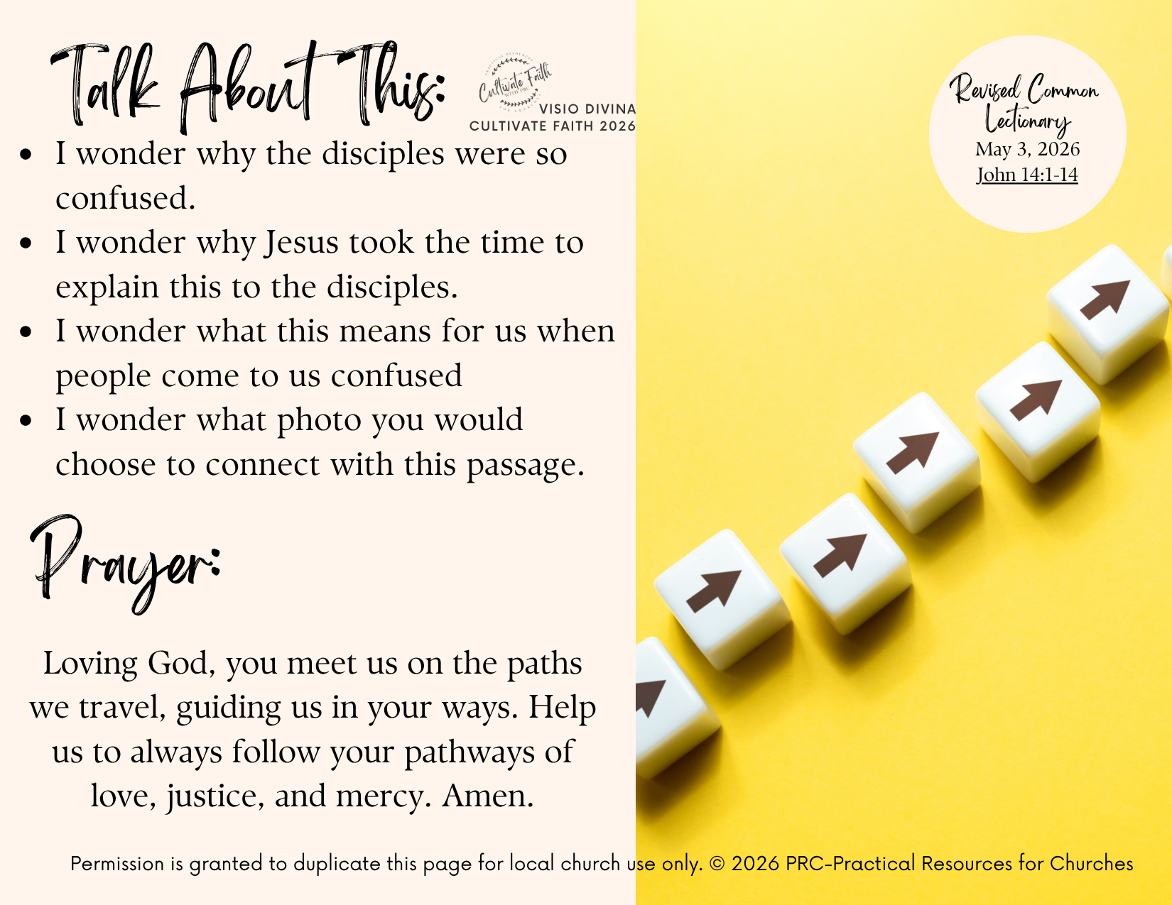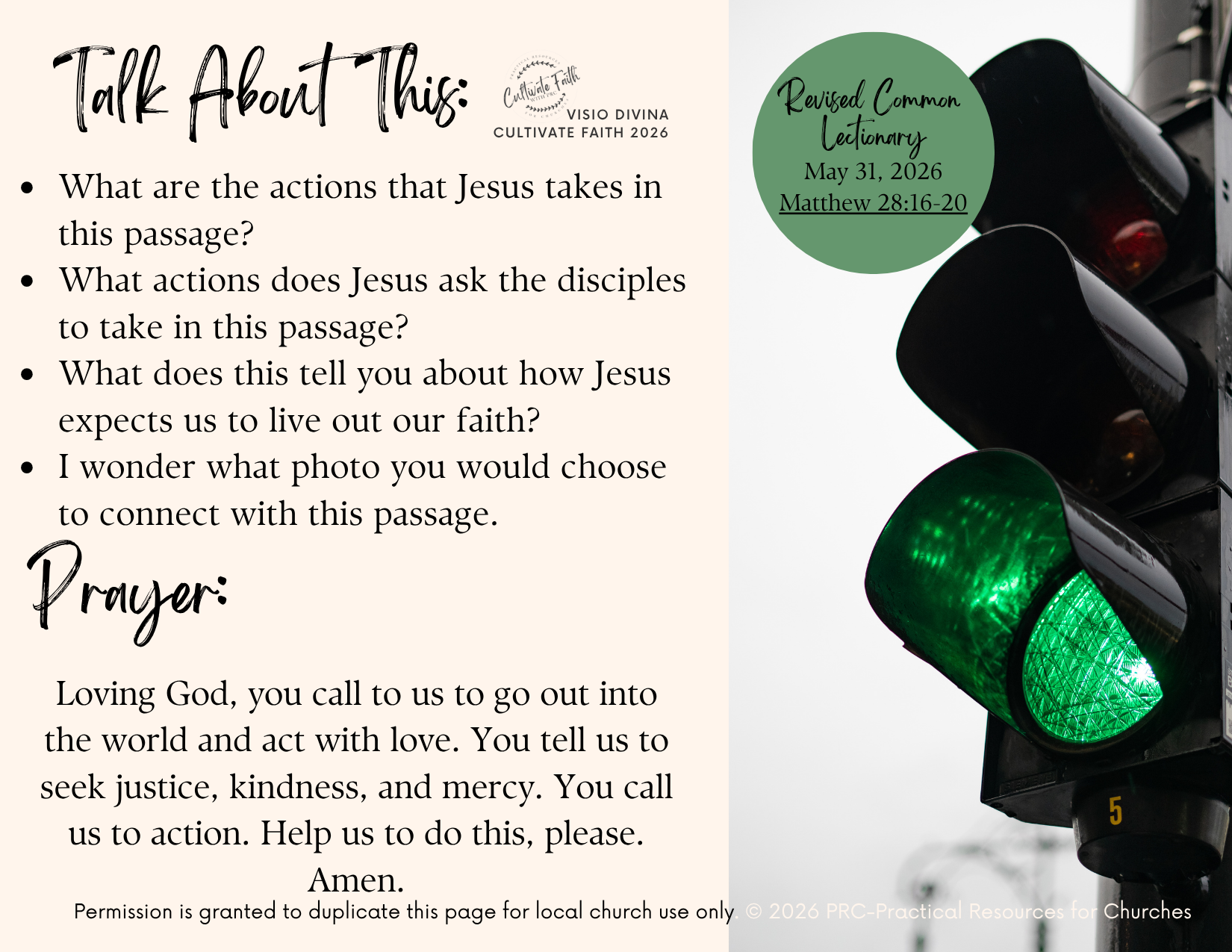 - postcard format of our visio divina cards that include live links to the Scripture from the RCL, wondering questions, a photograph, and a prayer.
