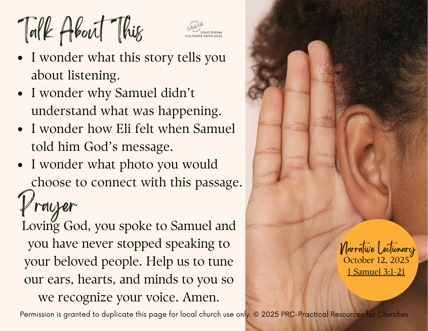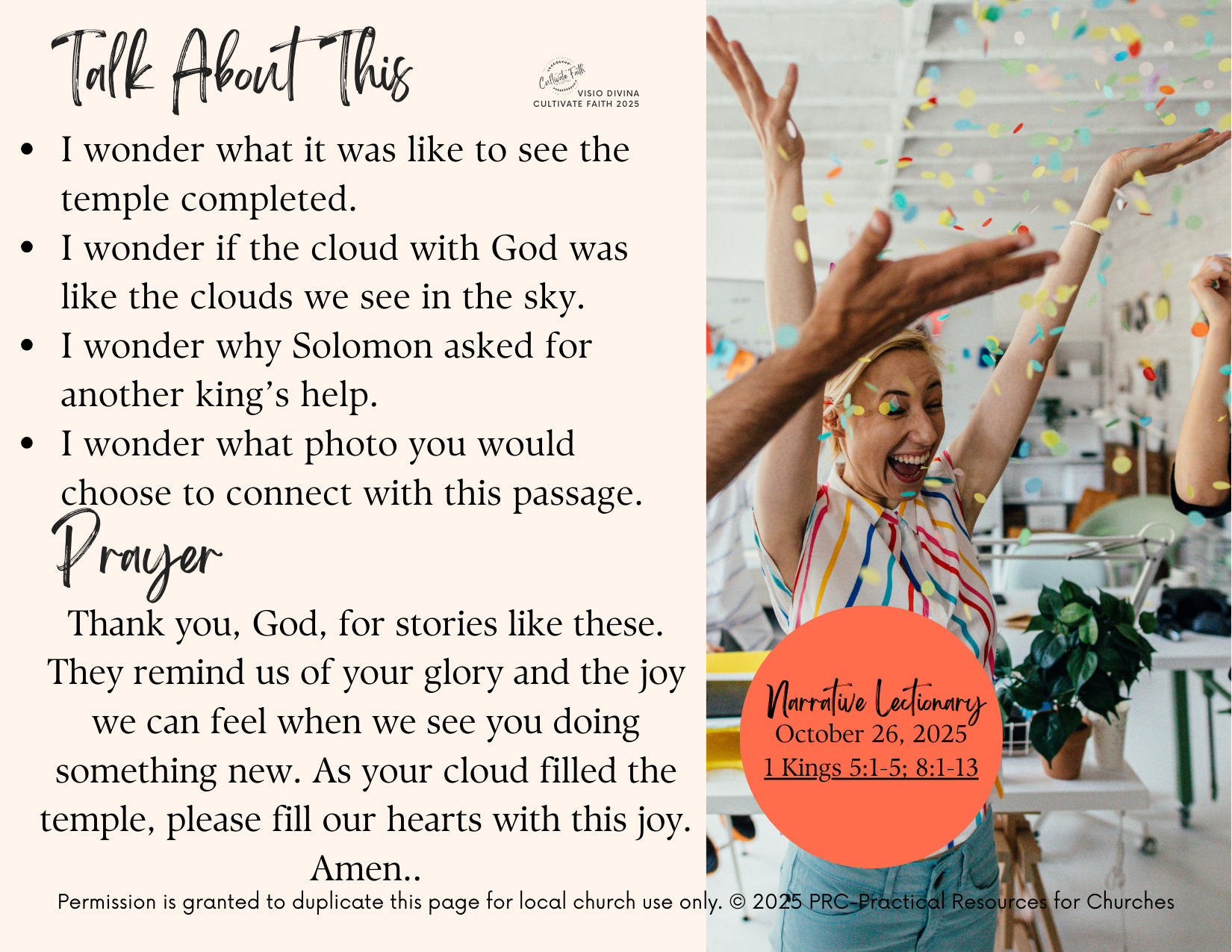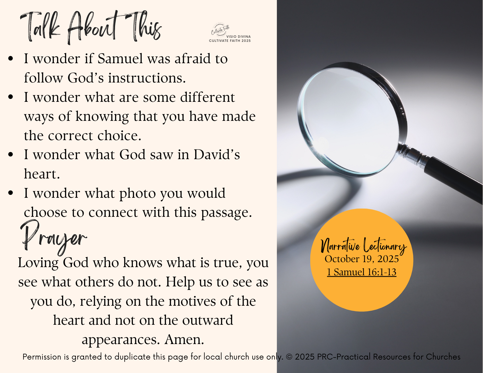 Visio Divina Guide is our resource that helps you creatively connect the generations with God’s Word. It is part of our Connections resources, designed specifically to help congregations connect their worship, faith formation, and families for today’s dynamic church settings.